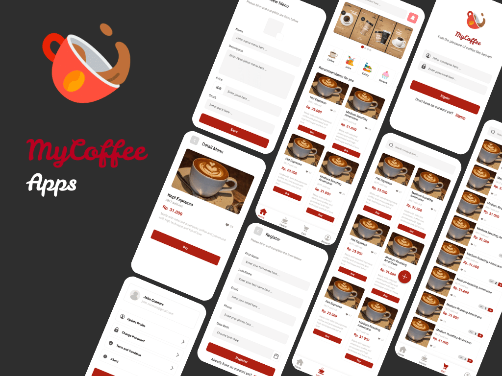 Aplikasi MyCoffee merupakan aplikasi pemesanan yang dirancang khusus untuk mendukung operasional kafe kecil hingga menengah. Aplikasi ini menyediakan beberapa fitur penting, seperti pencatatan daftar barang yang tersedia serta penghitungan otomatis jumlah barang yang dipilih oleh pelanggan, sehingga dapat mempermudah proses pemesanan dan meningkatkan efisiensi layanan di kafe.